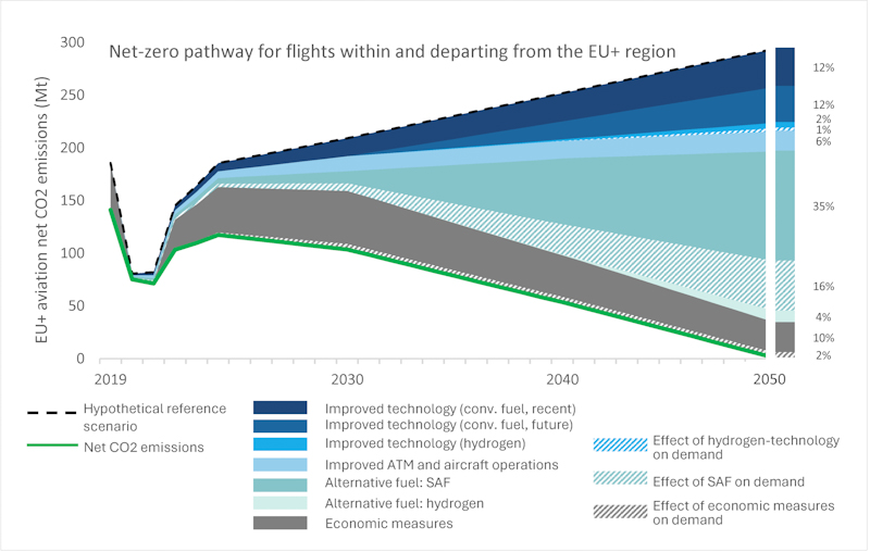 The Destination 2050 alliance is made up of five industry associations representing airlines, airports, air navigation services and aerospace manufacturers: Airlines for Europe (A4E), European Regions Airline Association (ERA), Airports Council International (ACI) Europe, CANSO Europe and the Aerospace, Security and Defence (ASD) Industries Association of Europe. As with the first roadmap in 2021, the updated Destination 2050 roadmap report was prepared by Dutch consultants Royal Netherlands Aerospace Centre (NLR) and SEO Amsterdam Economics.