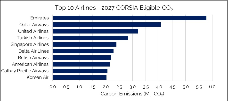 Through its NetZero assessment platform, IBA calculates the top 10 international carriers will collectively be responsible for offsetting 29 million tonnes of emissions in 2027 alone, or almost 37% of the volume that must be offset, potentially resulting in huge costs for some operators.